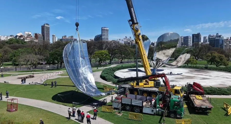 La escultura porteña vuelve a recuperar su esplendor: el primer pétalo, restaurado con tecnología aeroespacial, recorrió 150 km por agua hasta su destino....